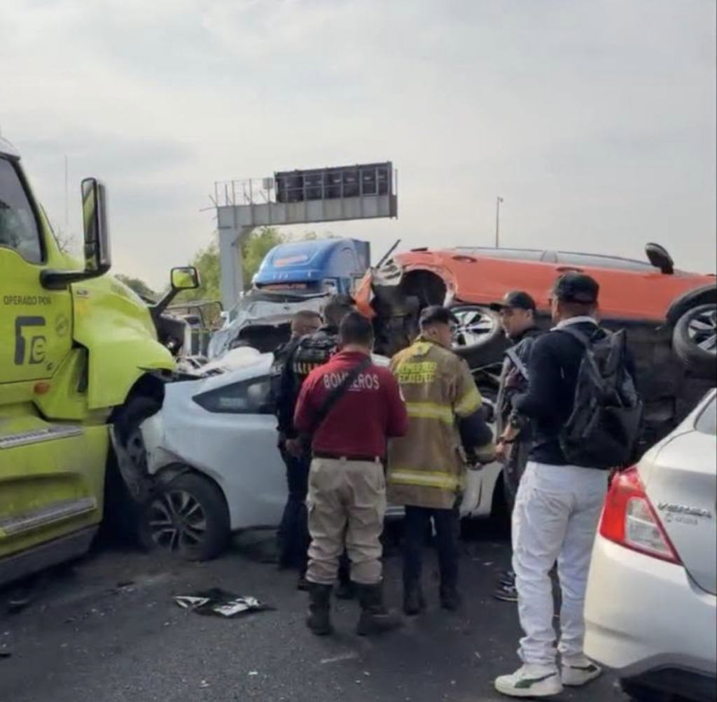Por otra parte, en el Circuito Exterior Mexiquense se reportó una carambola a la altura del kilometro 37, en Ecatepec, a unos metros de la caseta de Las Américas, donde al menos ocho unidades se vieron involucradas, entre ellos un trailer y dos unidades del transporte público.