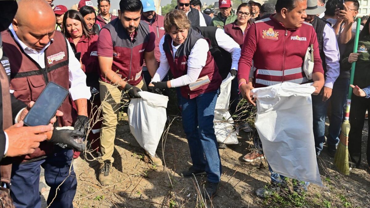 Nezahualcóyotl, Edomex, 18 de abril de 2026.– La gobernadora del Estado de México, Delfina Gómez Álvarez, encabezó una Mega Jornada de Limpieza en los límites de Nezahualcóyotl y Ecatepec, donde se recolectaron más de 21 toneladas de basura y mil llantas a lo largo de cinco kilómetros lineales.