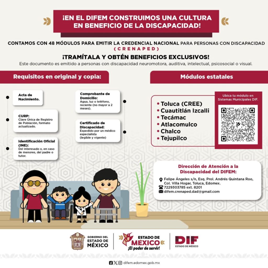 A través del Sistema para el Desarrollo Integral de la Familia del Estado de México (DIFEM), presidido por Karina Labastida Sotelo, esta credencial, con vigencia de hasta cinco años, facilita el acceso a trámites, servicios y beneficios para la eliminación de barreras sociales, administrativas y económicas.