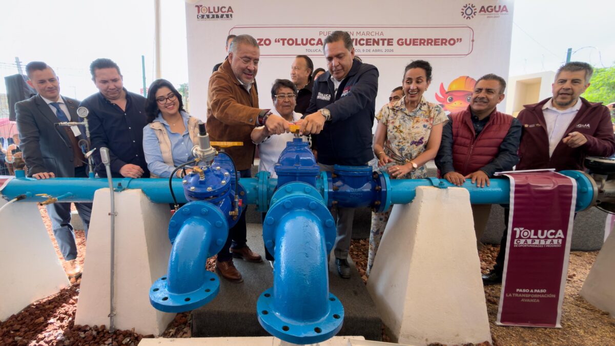 Toluca, Edomex, 9 de abril de 2026.- El alcalde Ricardo Moreno encabezó la entrega del pozo profundo “Toluca VII” o Vicente Guerrero, cuya inauguración suma ya 12 pozos en funcionamiento de una meta total de 21, los cuales permitirán recuperar un caudal de 570 litros por segundo, volumen que compensa la pérdida del recurso proveniente de fuentes externas.