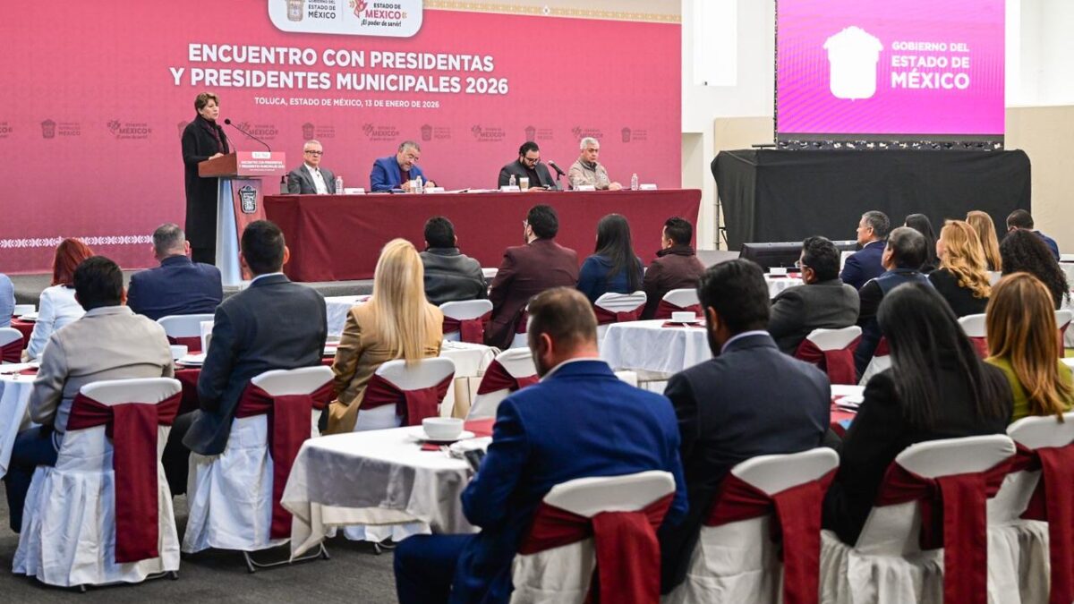 Toluca, Edomex; 13 de enero de 2026.– La gobernadora del Estado de México, Delfina Gómez Álvarez se reunió con presidentas y presidentes municipales mexiquenses, con quienes compartió que la seguridad y obra pública serán los ejes centrales para este 2026.