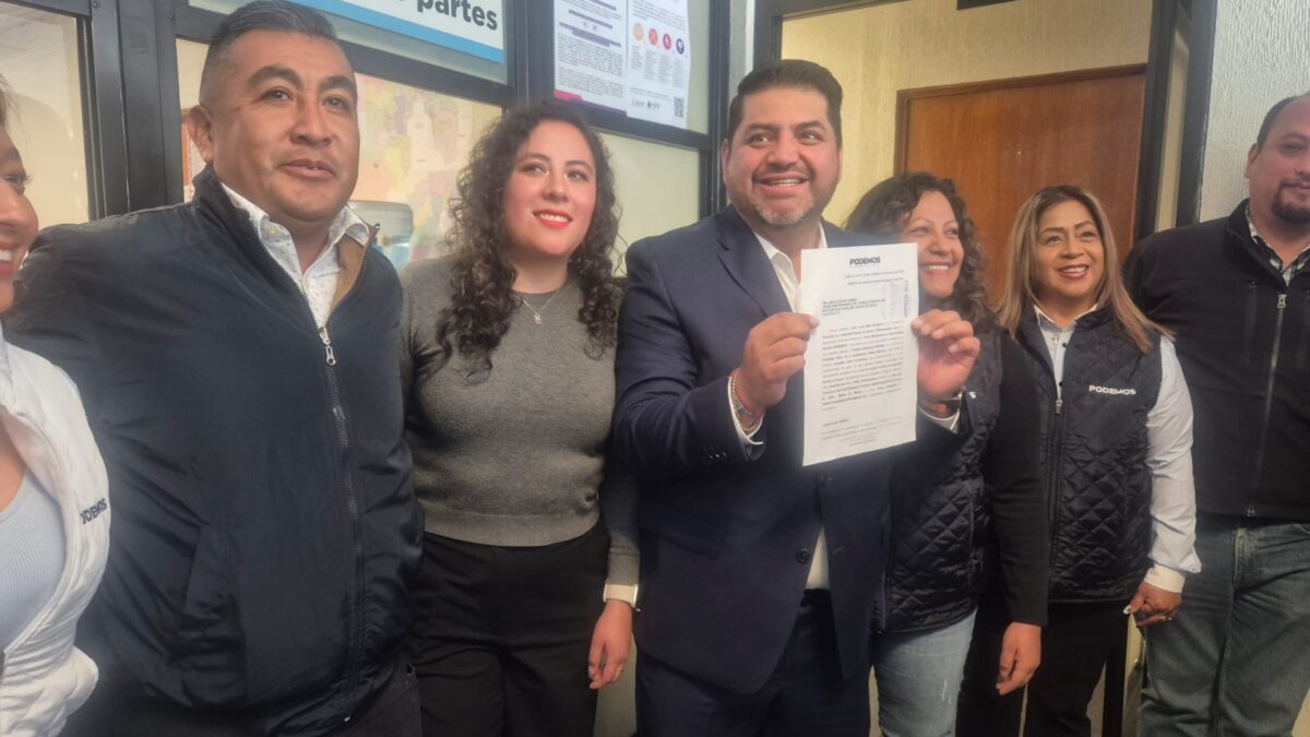 Toluca, Edomex; 27 de enero de 2026.- Christian Campuzano Martínez, dirigente estatal de Podemos, solicitó ante el Instituto Electoral del Estado de México (IEEM), el registro de esta agrupación como partido político local con el propósito de contender por primera ocasión, para las elecciones intermedias de 2027, cuando se renovarán 125 Ayuntamientos y 75 diputaciones locales.