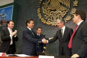 Redacción Pachuca, Hidalgo, 19 de mayo de 2023. El gobernador del Estado de México, Alfredo Del Mazo, junto a sus homólogos de Hidalgo, Julio Menchaca,