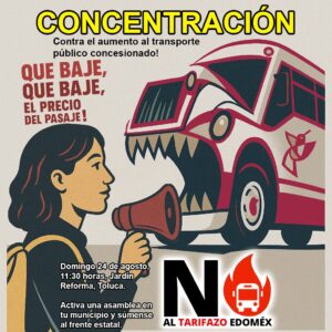 Toluca, Edomex; 15 de agosto de 2025.- Ante lo que parece un inminente aumento a la tarifa del transporte público, se ha lanzado una convocatoria