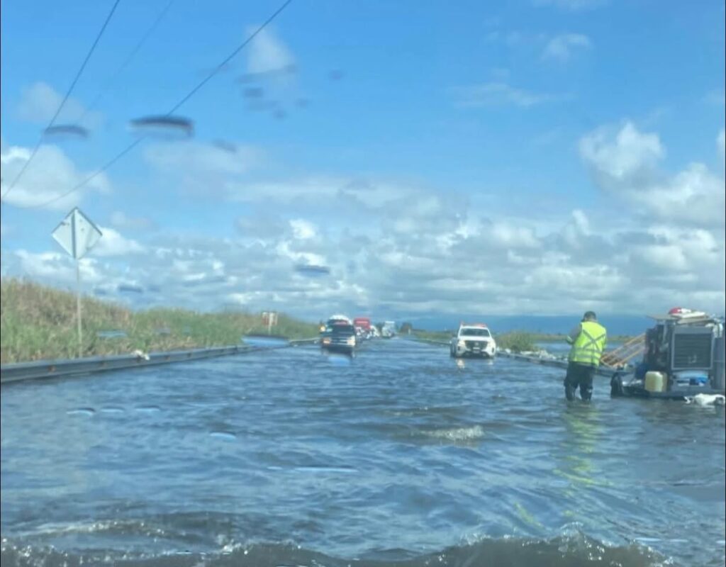 Las intensas lluvias que azotaron el valle de Toluca hicieron crecer las Ciénegas del Lerma y las aguas cubrieron la cinta asfáltica de esta vialidad, con un tirante de por lo menos 20 centímetros, que obligaban a reducir la velocidad a los usuarios a menos de 40 kilómetros por hora.