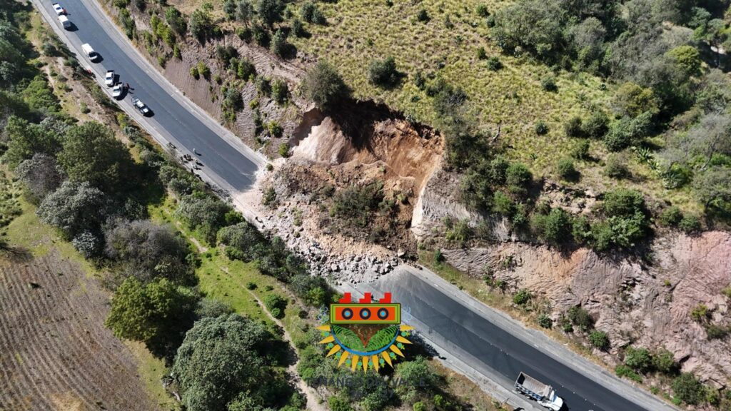 Tenango del Valle, Edomex; 3 de diciembre de 2025.- Un deslave sobre la autopista Tenango – Ixtapan de la Sal se registró a la altura en del kilómetro 13+200 de dicha vía, con dirección a Tenango del Valle.