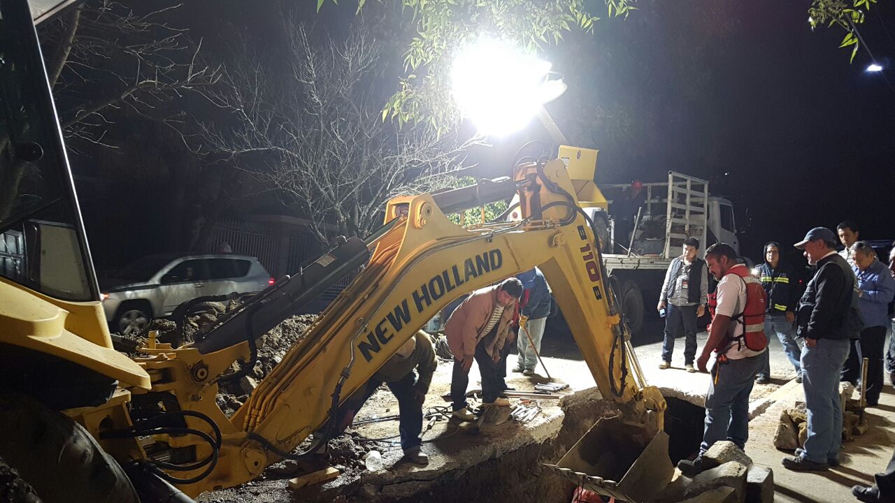 José Manuel Camacho Salmón, vocal ejecutivo de la CAEM, informó que trabajaron durante toda la noche para atender la contingencia provocada por la fuga ocasionada por la empresa, la cual realizó excavaciones sin contar con los permisos necesarios, y que derivó en la ruptura de la línea de conducción de 24 pulgadas Lomas Verdes-Tequexquináhuac, ubicada en la colonia Fuentes de Satélite, en Naucalpan.