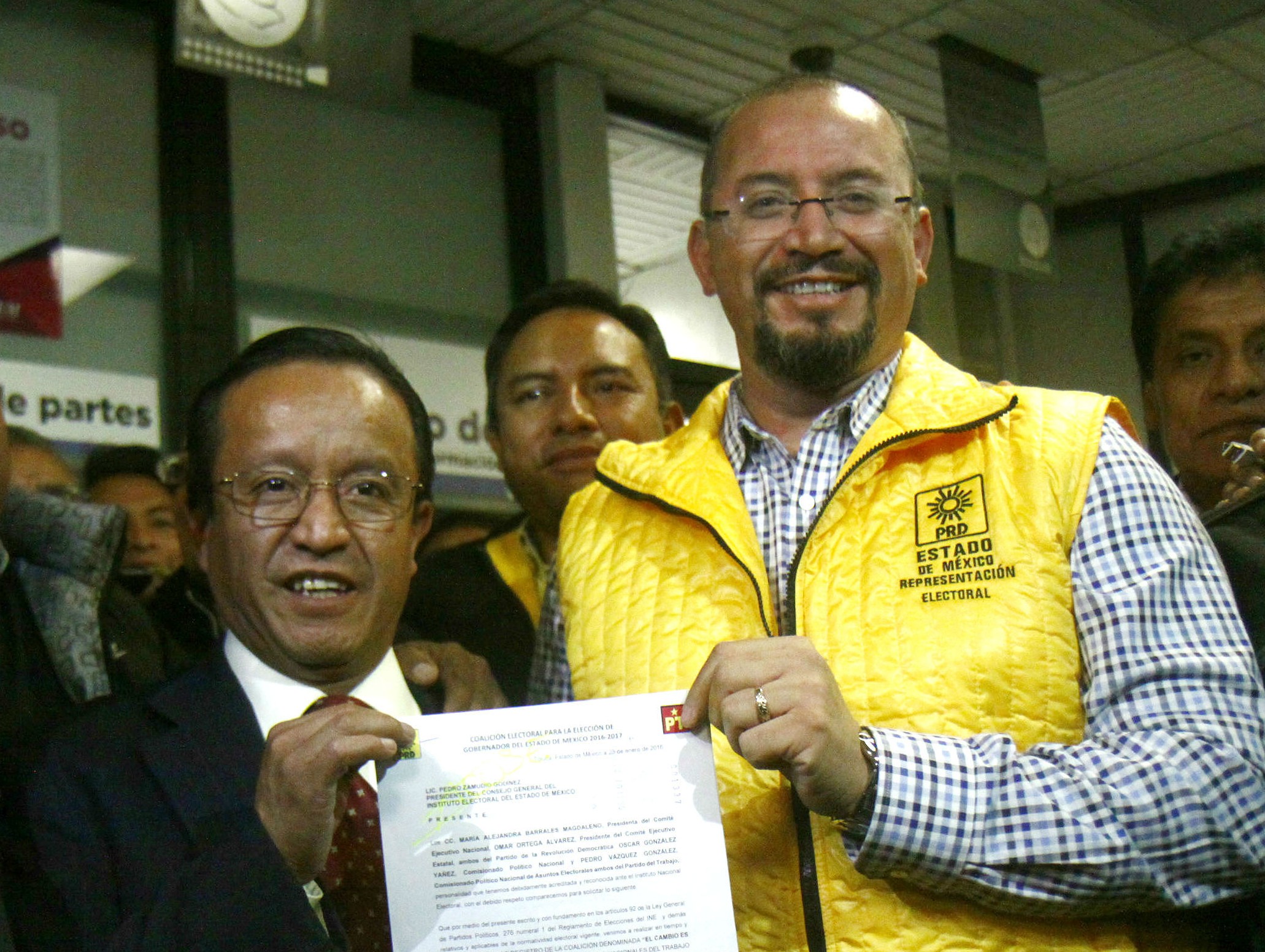 Los dirigentes del PRD y PT acudieron al IEEM diez minutos antes de que venciera el plazo legal,   a registrar su alianza, la cual será abanderada por el candidato que salga triunfador del proceso interno del PRD.